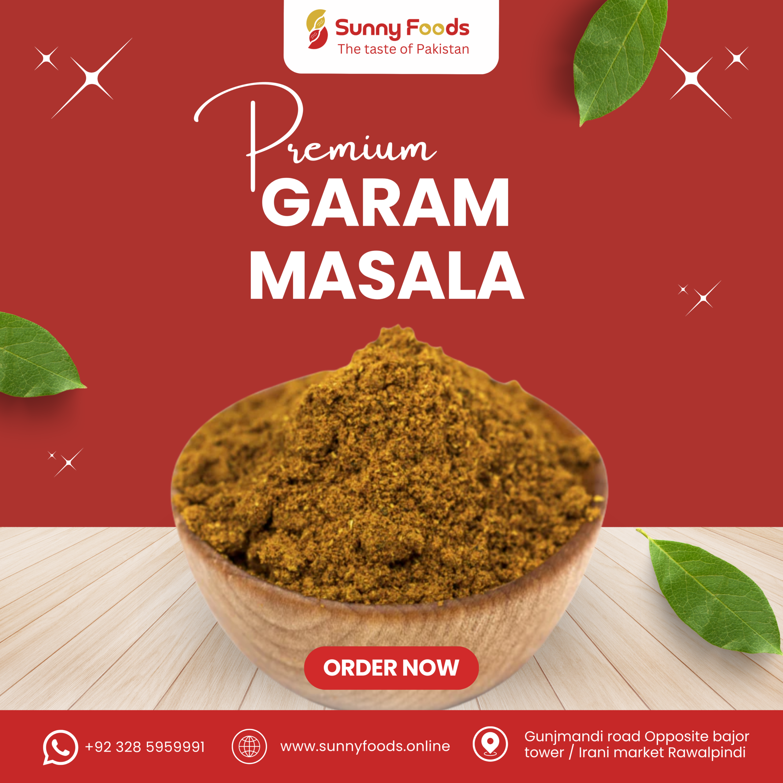Sunny Foods Garam Masala blends the finest spices to create a rich, aromatic, and flavorful seasoning. Perfect for curries, rice dishes, meat recipes, and snacks, our garam masala elevates every meal. Hygienically packed to retain full aroma and freshness, it guarantees authentic Pakistani taste.