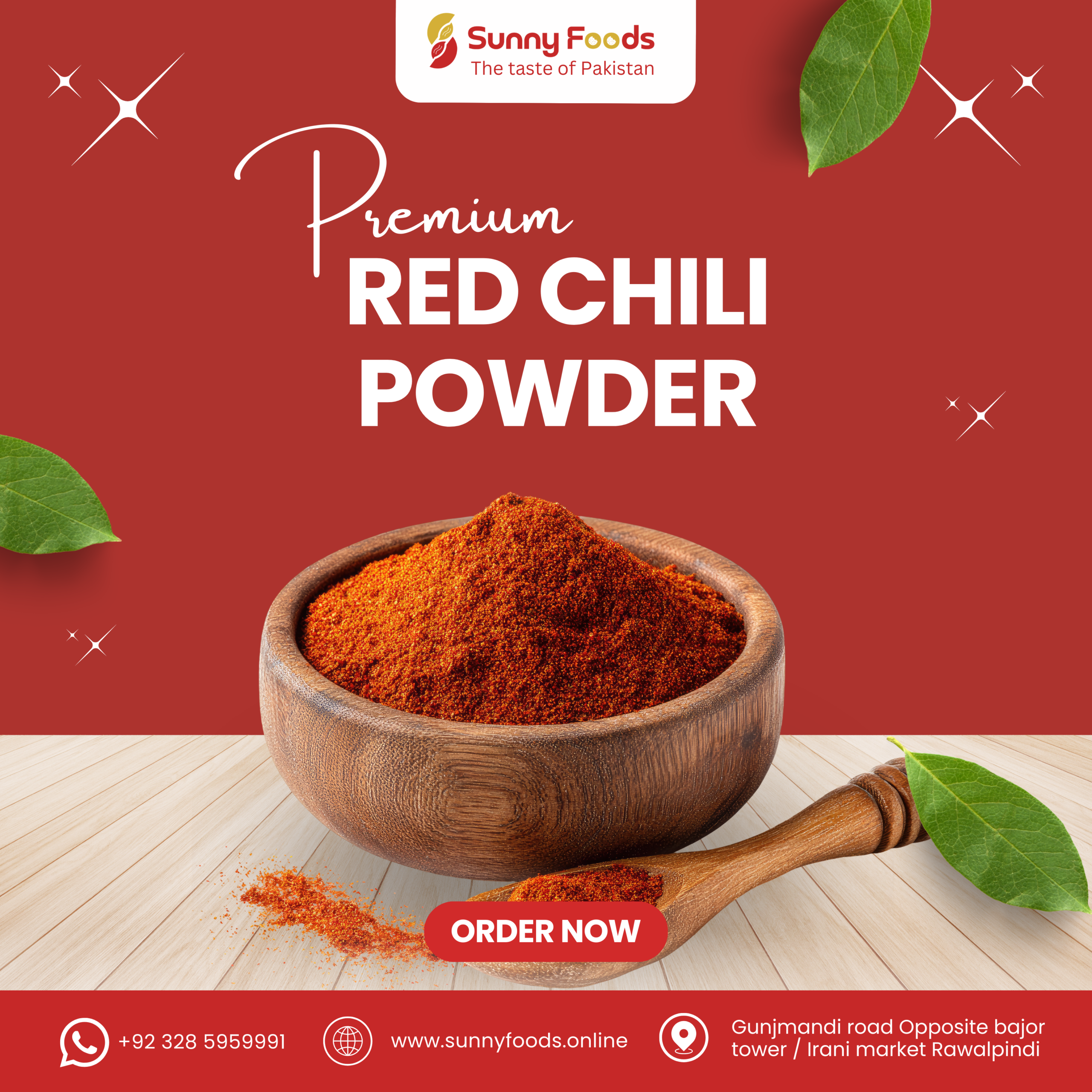Sunny Foods Red Chili Powder is made from carefully selected red chilies to deliver a bold, vibrant color and consistent spicy heat. Ideal for curries, marinades, snacks, and BBQs, this premium chili powder enhances the flavor of every dish. Packed hygienically to preserve freshness, aroma, and taste, it is a must-have for spice lovers.